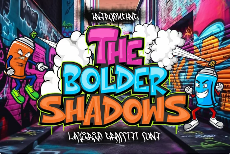 The Bolder Shadows is an urban graffiti font characterized by sharp edges and a bold look. Ideal for music posters, apparel designs, shirts, and streetwear, this font brings a touch of edginess to your projects. The unique style of "The Bolder Shadows" makes it the perfect choice for street style or urban graffiti themes. Whether you want to create a strong and powerful statement or simply add a touch of attitude to your designs, "The Bolder Shadows" is the font for you.
